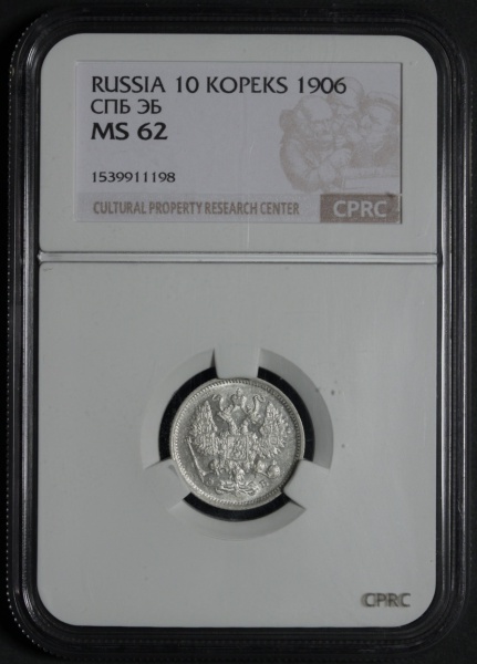 Россия 10 копеек 1906 года СПБ ЭБ. В слабе CPRC MS 62