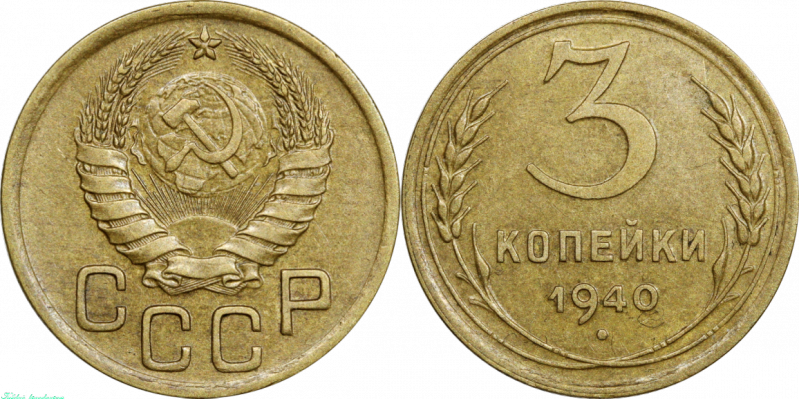 СССР 3 копейки 1940 года AU-UNC